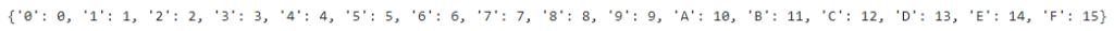 1)Construire un dictionnaire qui attribue les valeurs aux symboles hexadécimaux