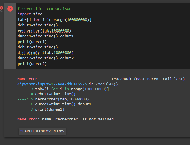 Nous allons ensuite comparer le temps que prend la machine si jamais on lui demande de chercher un nombre dans une liste
