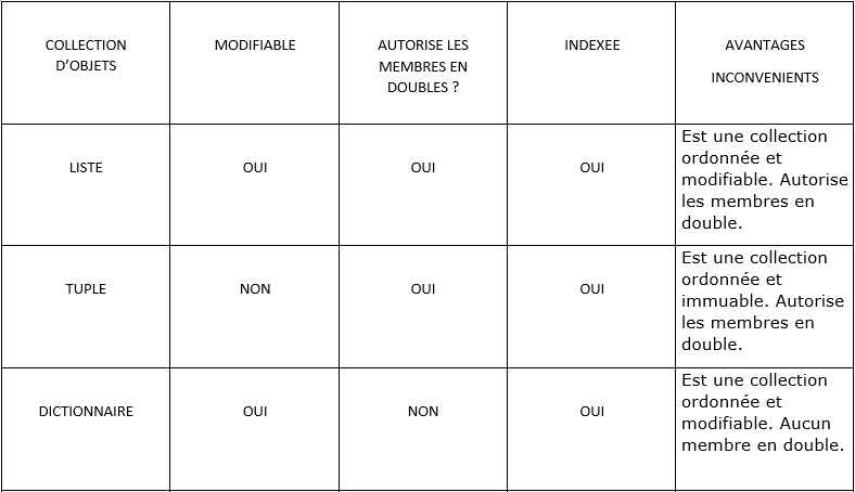Tuple est l’un des 4 types de données intégrés à Python utilisés pour stocker des collections de données, les 3 autres sont List Set et Dictionnaire tous avec des qualités et une utilisation différentes.