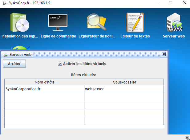 Toujours dans le même « serveur » configurer le adresse de ton site et choisir le dossier qu’on veux exécuter (dossier ou on a mis les fichiers html .