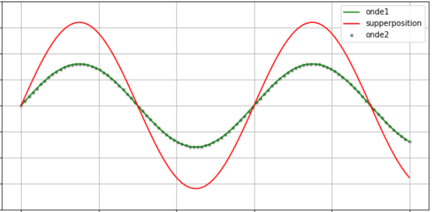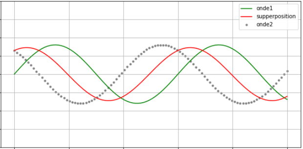 Superposition de deux ondes sinusoïdales (somme de deux sinus)