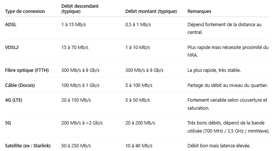 Deux grandeurs importantes le débit et la latence.
